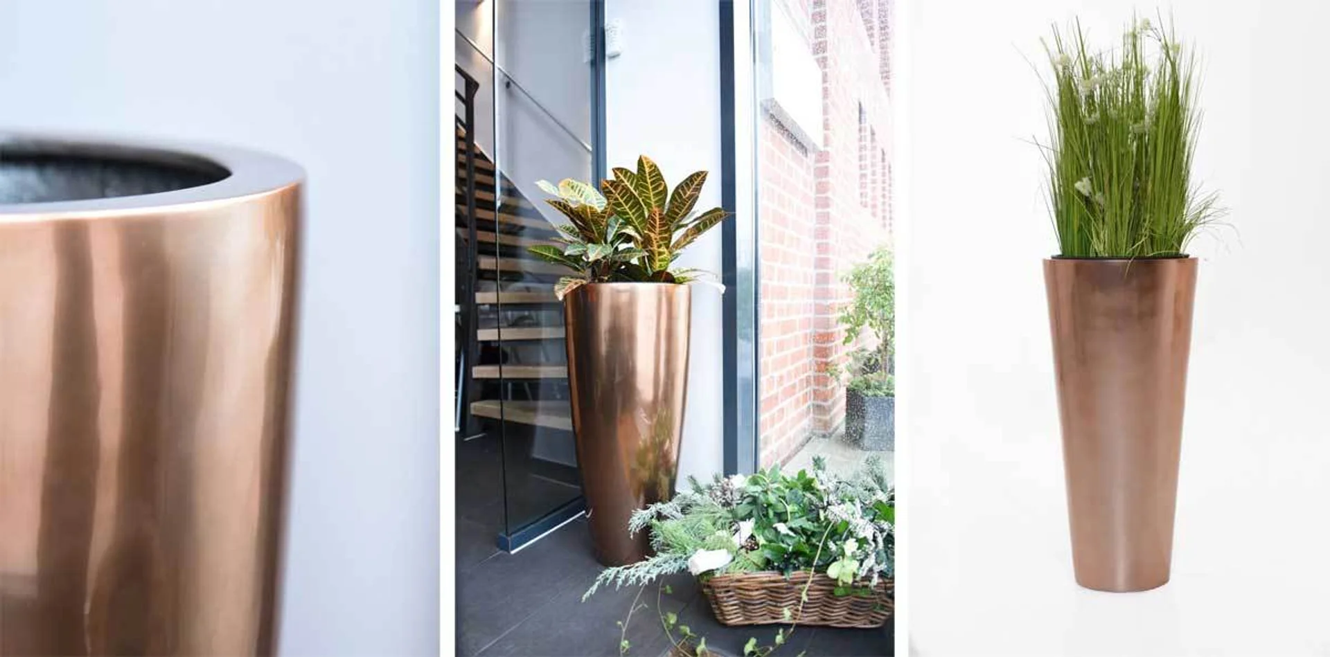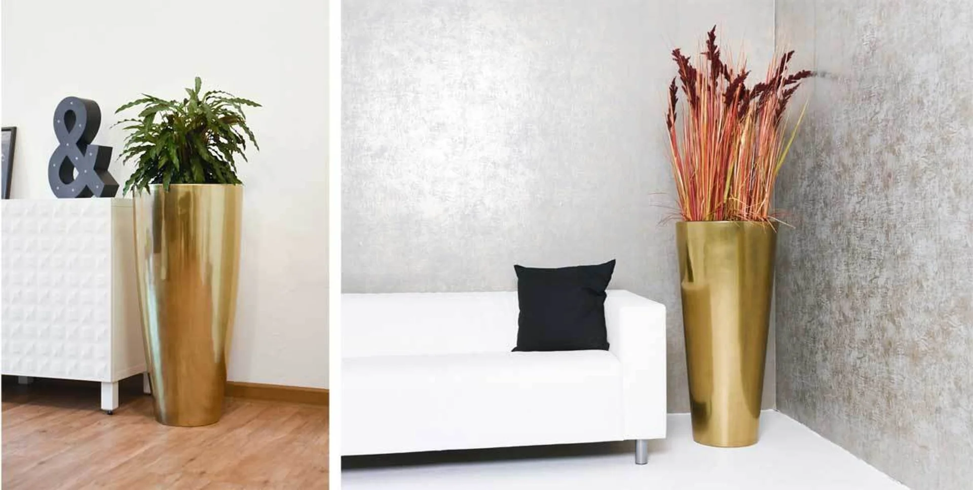 Vysoké květináče honosného vzhledu jsou dokonalým doplňkem do každého moderního interiéru. Krása květináčů a exkluzivní vzhled upoutá pozornost každého hosta a člena rodiny. Květináč ve zlatém, stříbrném a růžovo zlatém designu si přeje každá moderní žena. Květináče jsou vyrobeny z robustního sklolaminátu, jsou lehké, velmi stabilní a opravdu nikdy nerezaví.