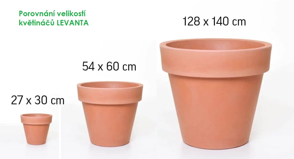Pro ilustraci široké škály velikostí uvádíme tři květináče LEVANTA (v terakotovém odstínu) v nejmenší, středně velké a největší verzi: