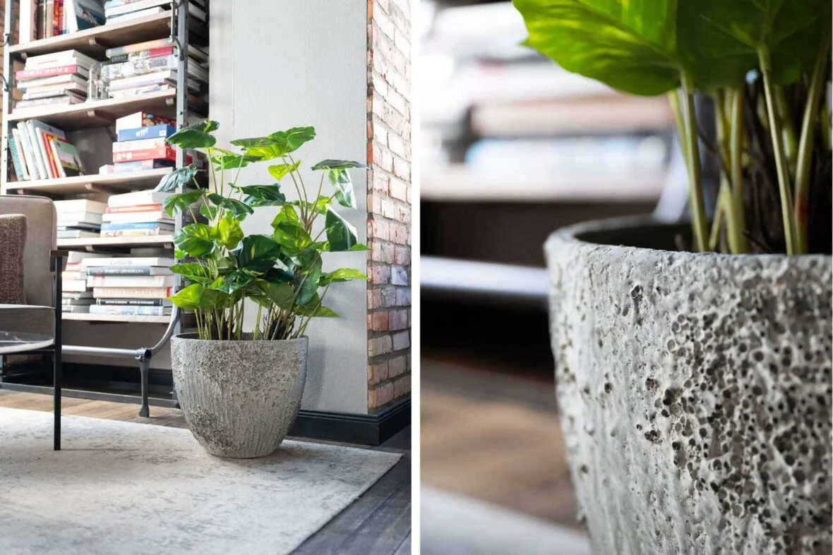 Jak je dobře vidět z detailní fotografie těchto květináčů, reliéfní struktura vytváří ohniska, které jsou mnohem atraktivnější a zajímavější, než jednotně řešený povrch. Vzhled je moderní, ale i rustikální, takže květináče v tomto provedení ladí s mnoha styly bydlení, ať už moderními, industriálními nebo přírodními.