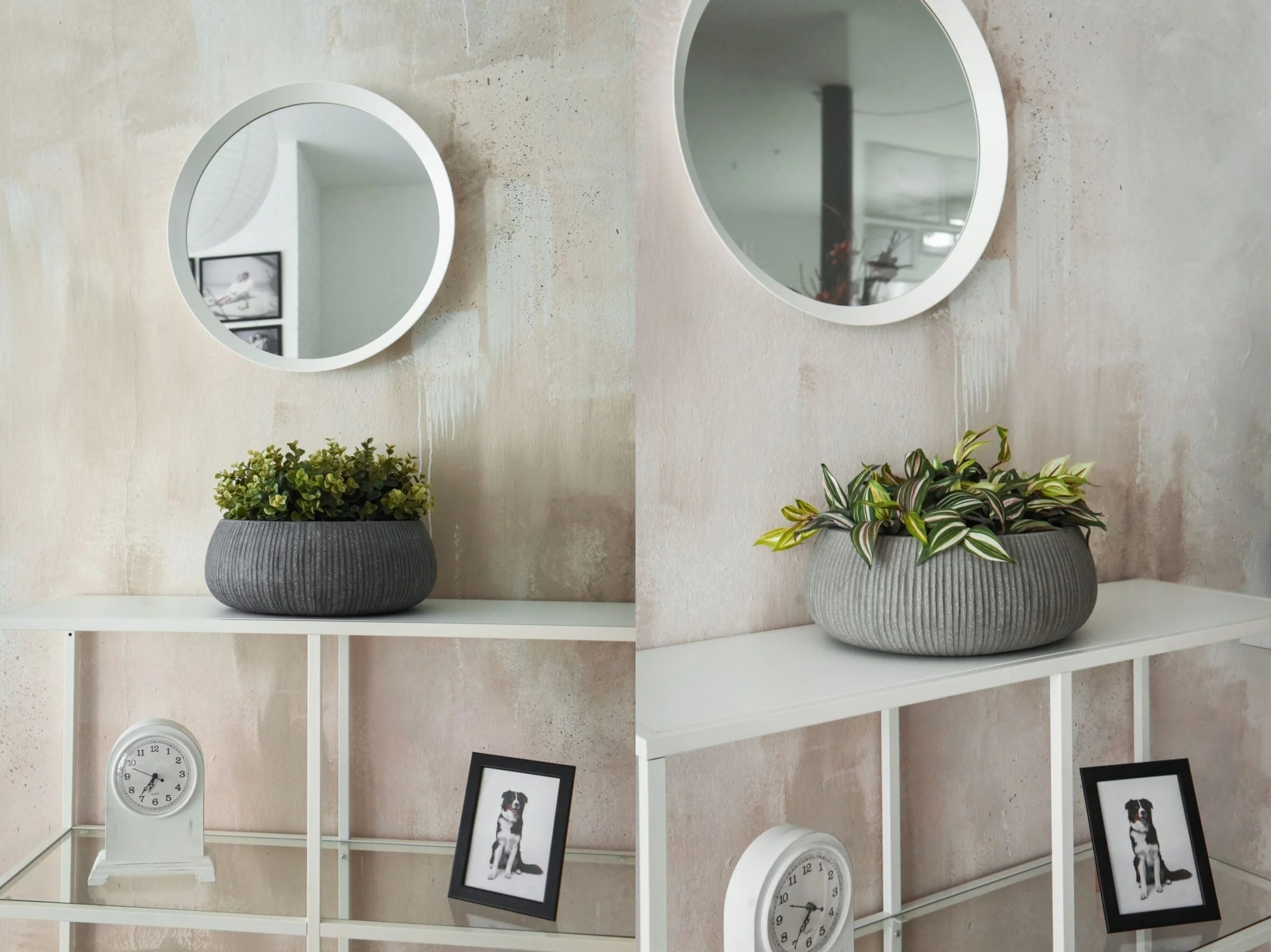 S výškou 14 cm a průměrem 31 cm (vnější horní část) je miska na rostliny PERA ideální pro výsadbu nízkých trvalek, kaktusů a sukulentů. Můžete do ní také vysadit středomořské bylinky, jako je tymián a bazalka, nebo sezónně ozdobit mísu dekoračními předměty, sušinami a jiným přírodním materiálem.