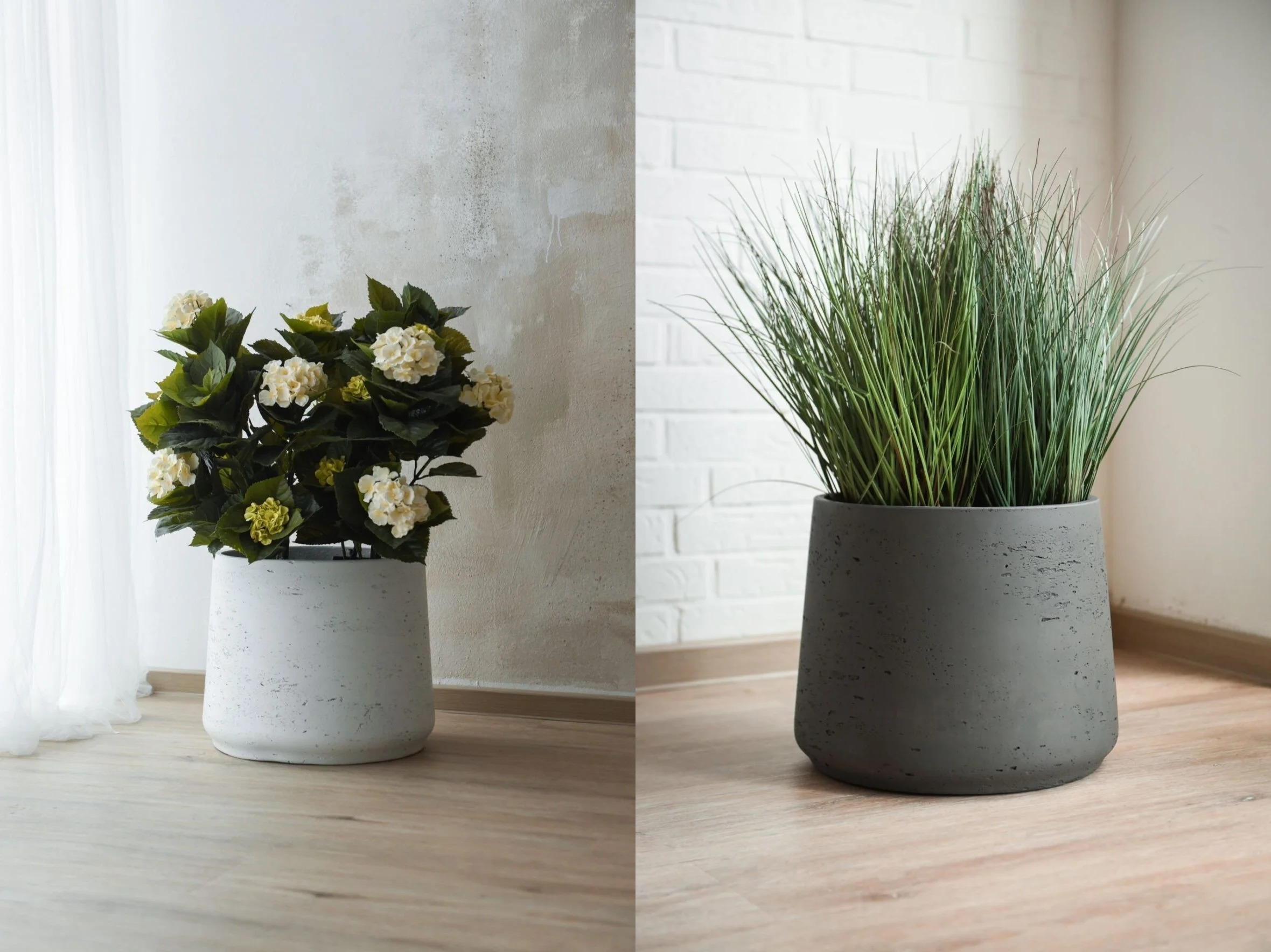 Sklolaminát, který je výrazně lehčí než beton, umožňuje vyrábět květináče různých tvarů a také povrchových úprav. Od vysoce lesklých, exkluzivních až po hrubé, strukturované, matné povrchy. Nové modely s mnoha jemnými, nepravidelně otevřenými póry posilují iluzi betonového provedení. Dokonce i hmatem byste tyto květináče zaměnili za betonové - drsný povrch je pro beton typický.