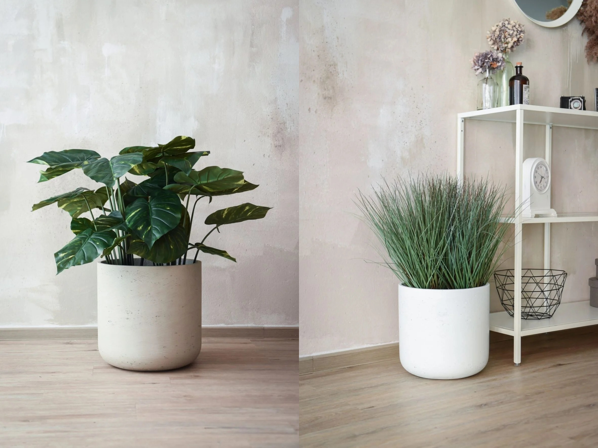 Betonový design sluší také květináčům CHICO v bílé a CHICO v krémové barvě