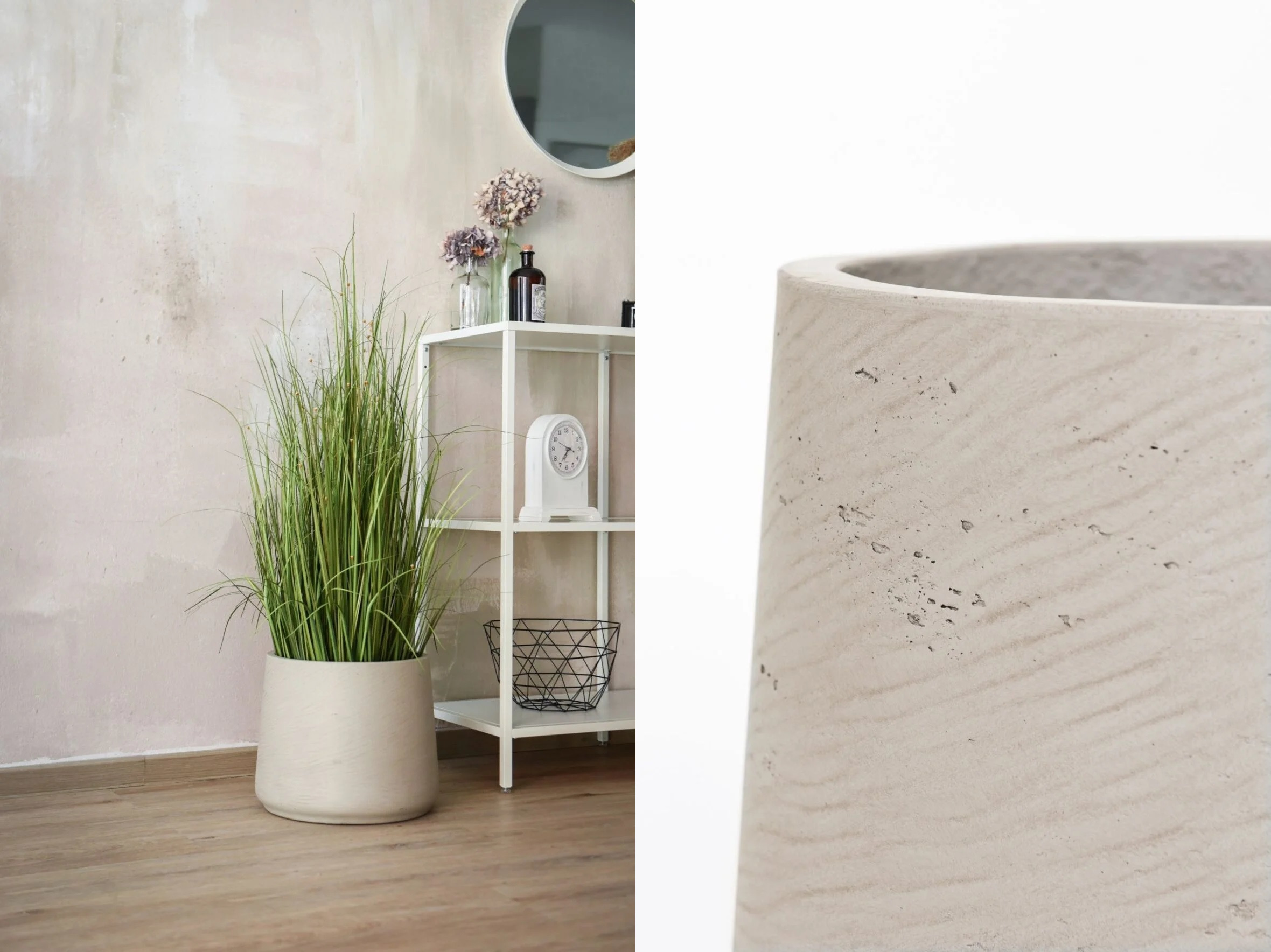 Příběh o úspěchu betonového designu pokračuje! Nové květináče s lehce pórovitou strukturou, znatelně drsným povrchem a rustikálním vzhledem v bílé, béžové a antracitové.