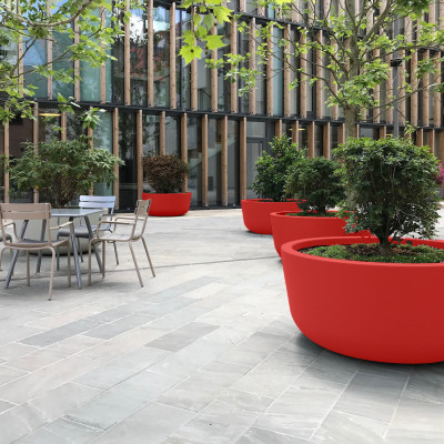 Vlastnosti sklolaminátu z něj dělají vhodný materiál pro výrobu venkovních, celoročně použitelných květináčů, které jsou pevné, odolné a snadno udržovatelné.