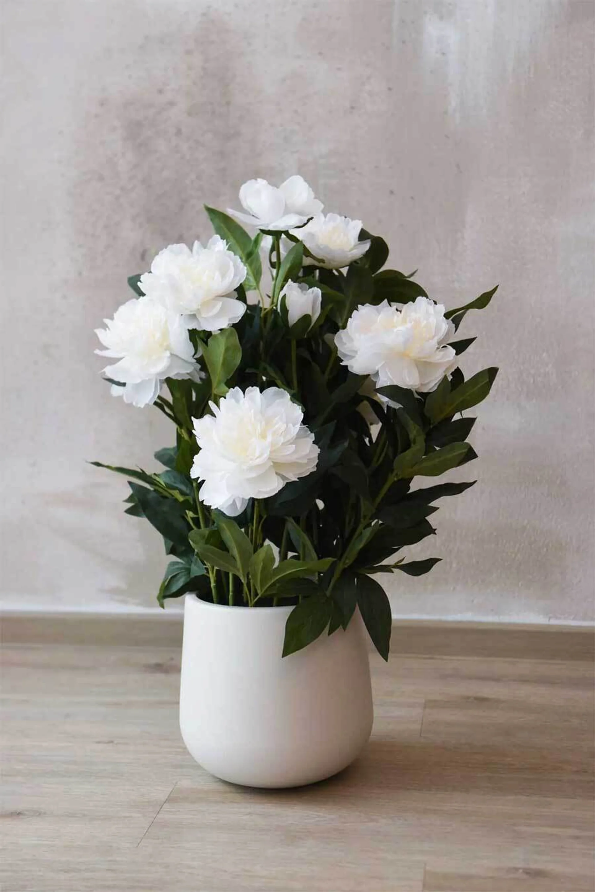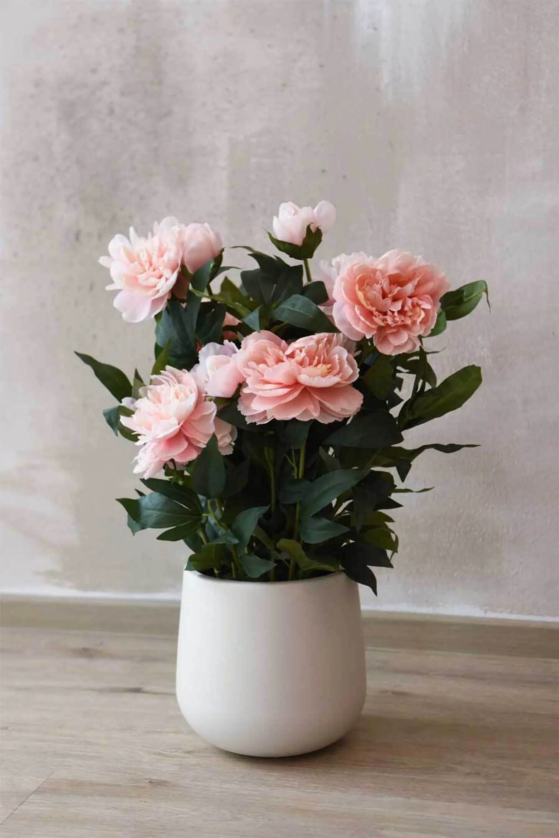 Nádherně rozkvetlé pivoňky signalizují začátek léta, ale bohužel veškerá jejich krása rychle mizí. Jiné je to s jejich dokonalými umělými replikami PEONY velkoformátové květy nikdy neuvadnou a lahodí oku po celý rok. Zde je naše nová pivoňka PEONY v růžovém a bílém provedení s pokojovým květináčem krémové barvy o výšce 70 cm.